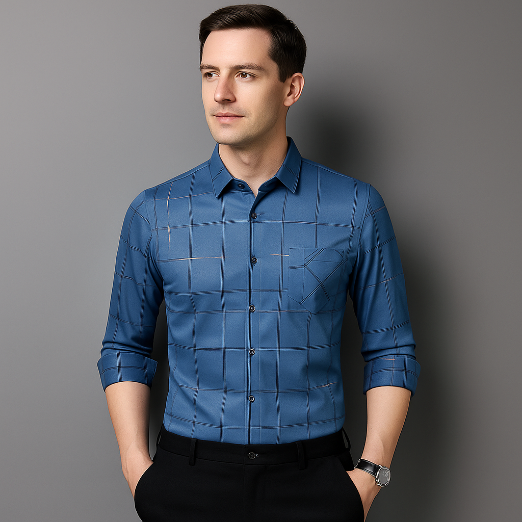Modern slim fit overhemd met lange mouwen en subtiel ruitpatroon. Perfect voor zowel zakelijke als casual gelegenheden.